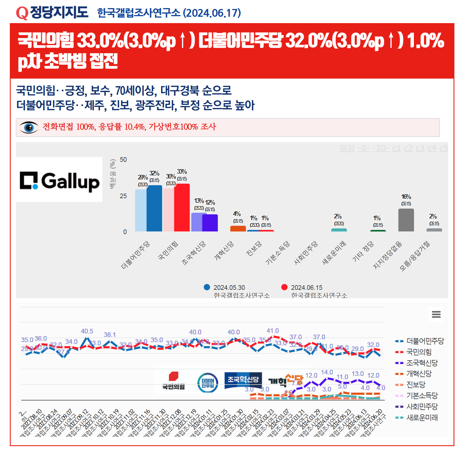 Á¤´çÁöÁöµµ(Çѱ¹°¶·´Á¶»ç¿¬±¸¼Ò, ÀÀ´ä·ü 10.4%, 100% ¸éÁ¢¿ø Á¶»ç, 2024.06.17°øÇ¥)