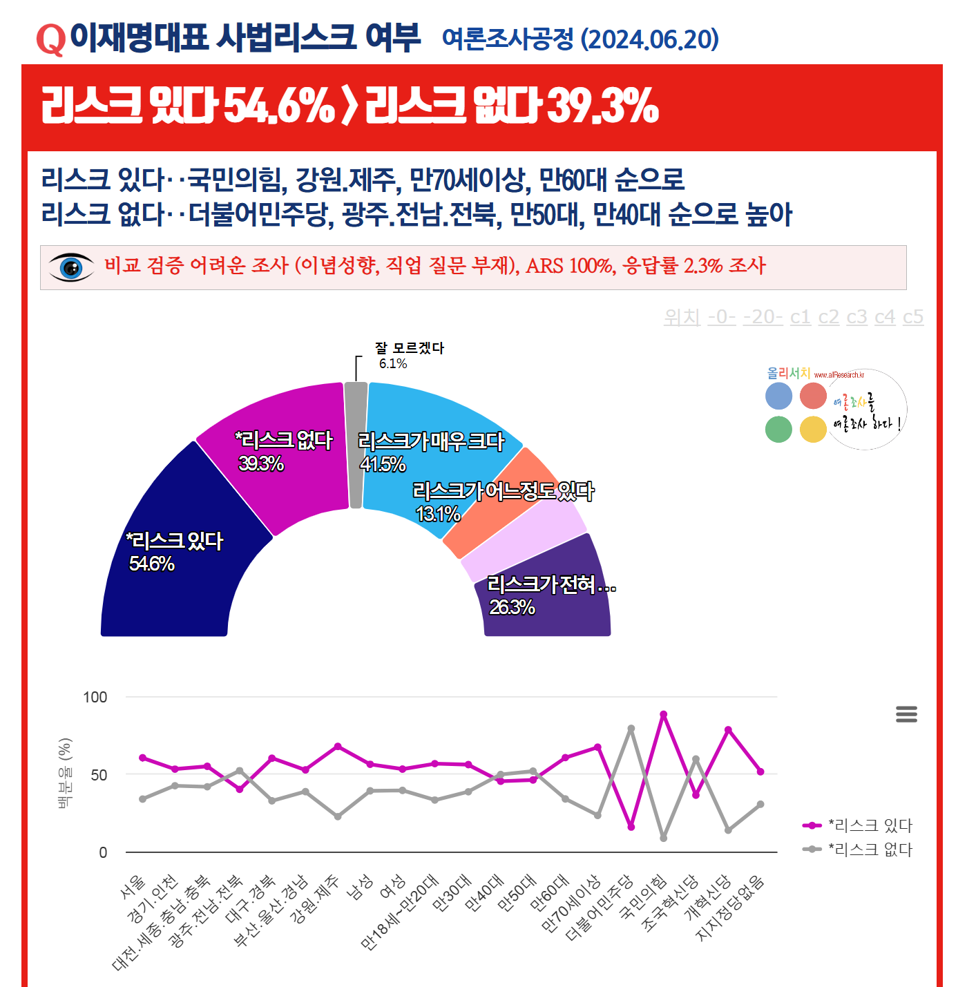 ÀÌÀç¸í´ëÇ¥ »ç¹ý¸®½ºÅ© ¿©ºÎ(¿©·ÐÁ¶»ç°øÁ¤, ÀÀ´ä·ü 2.3%, 100% ARS Á¶»ç, 2024.06.20°øÇ¥)
