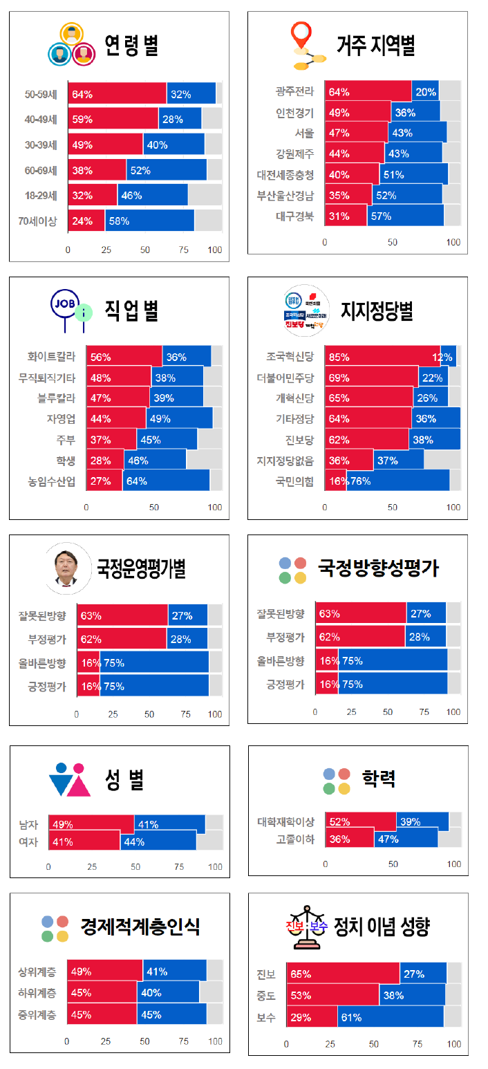 ´ÙÀ½Àº ¼ºº°, ¿¬·Éº°, Áö¿ªº°, ÇзÂ, Á÷¾÷, °æÁ¦Àû°èÃþÀνÄ, ÁöÁöÁ¤´çº°, À̳伺Çâ, ±¹Á¤¿î¿µÆò°¡ µî °¢ ÀÀ´äÃþº° »ó¼¼ ºÐ¼®µÈ ±â·ÏÀÌ´Ù.