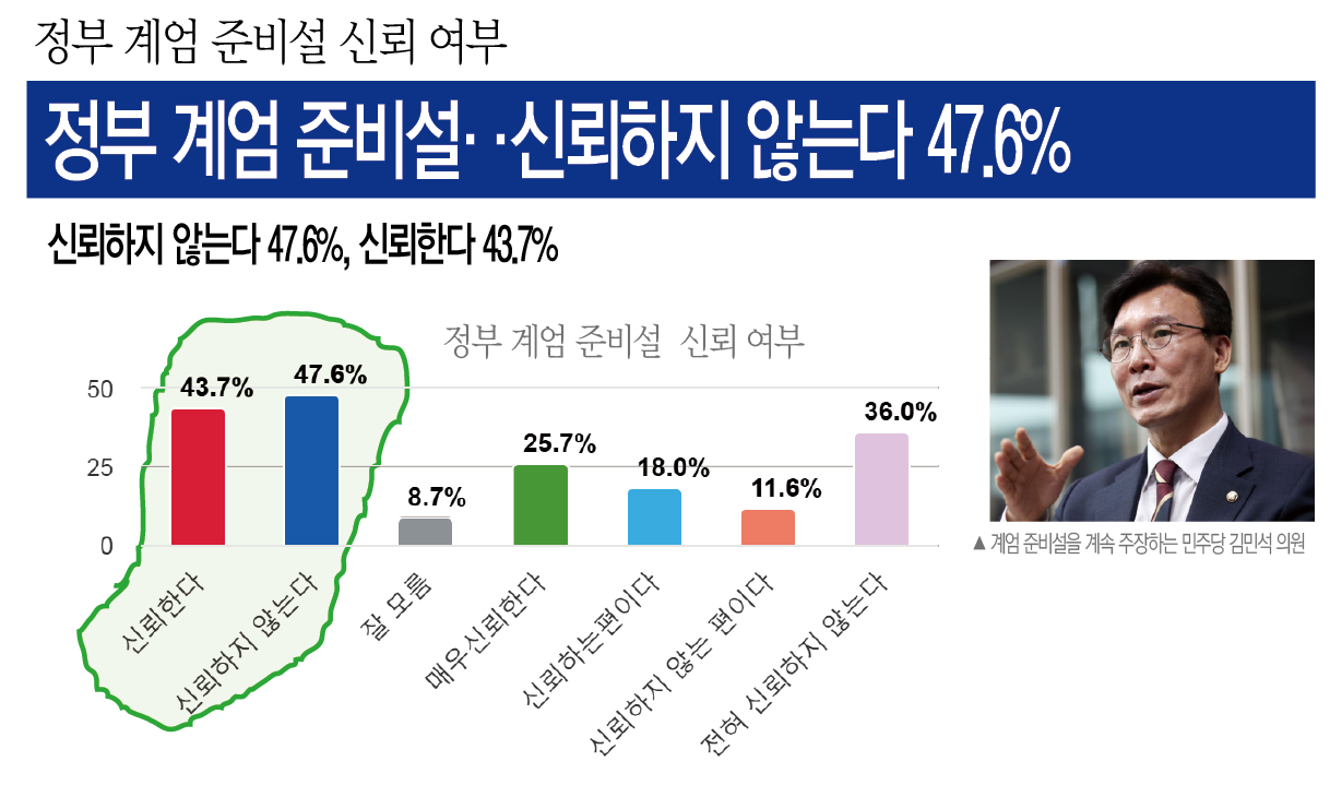 Á¤ºÎ °è¾ö Áغñ¼³¡¥½Å·ÚÇÏÁö ¾Ê´Â´Ù 47.6%, ½Å·ÚÇÑ´Ù 43.7%, 3.9%pÂ÷ ¿ÀÂ÷¹üÀ§³» Á¢Àü