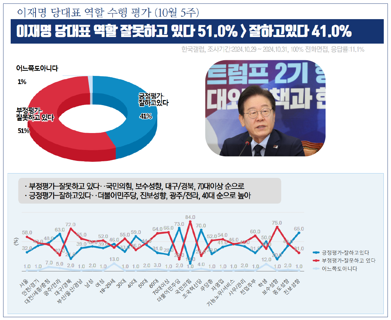 ÀÌÀç¸í ´ç´ëÇ¥ ¿ªÇÒ ¼öÇà Æò°¡(Çѱ¹°¶·´Á¶»ç¿¬±¸¼Ò, ÀÀ´ä·ü 11.1%, 100% ¸éÁ¢¿ø Á¶»ç, 2024.11.01°øÇ¥)