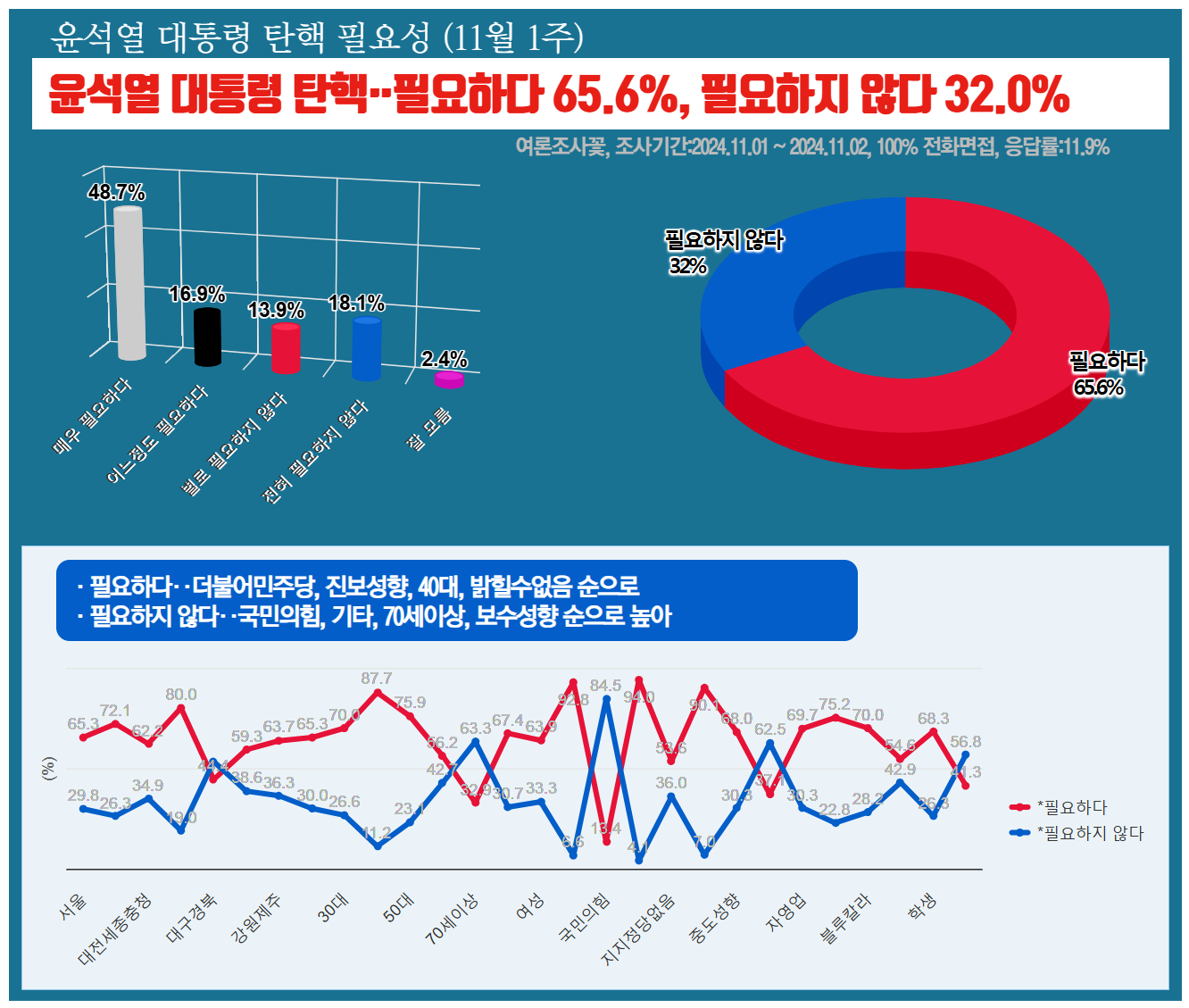 Á¶»ç±â°ü ¿©·ÐÁ¶»ç²ÉÀÌ 11¿ù 1ÀÏ¿¡¼­ 2ÀϱîÁö ÀÌÆ²°£ ½Ç½ÃÇÏ¿© 4ÀÏ ¹ßÇ¥ÇÑ ¡¸À±¼®¿­ ´ëÅë·É źÇÙ Çʿ伺¡¹Á¶»ç¿¡¼­ '¸Å¿ì ÇÊ¿äÇÏ´Ù'¿Í '¾î´ÀÁ¤µµ ÇÊ¿äÇÏ´Ù'¸¦ ÇÕÇÑ ¡¸ÇÊ¿äÇÏ´Ù¡¹´Â 65.6%À̸ç, 'º°·Î ÇÊ¿äÇÏÁö ¾Ê´Ù'¿Í 'ÀüÇô ÇÊ¿äÇÏÁö ¾Ê´Ù'¸¦ ÇÕÇÑ ¡¸ÇÊ¿äÇÏÁö ¾Ê´Ù¡¹´Â 32%·Î ³ª¿Ô´Ù.
