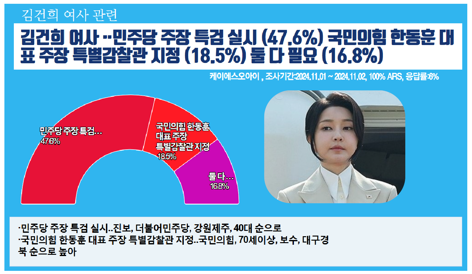 Á¶»ç±â°ü ÄÉÀÌ¿¡½º¿À¾ÆÀÌ ÁÖ½Äȸ»ç(Çѱ¹»çȸ¿©·Ð¿¬±¸¼Ò)°¡ 11¿ù 1ÀÏ¿¡¼ 2ÀϱîÁö ÀÌÆ²°£ ½Ç½ÃÇÏ¿© 4ÀÏ ¹ßÇ¥ÇÑ ¡¸±è°ÇÈñ ¿©»ç °ü·Ã¡¹¸¦ ¹¯´Â Á¶»ç¿¡¼ ¡¸¹ÎÁÖ´ç ÁÖÀå Æ¯°Ë ½Ç½Ã¡¹ÀÌ 47.6%¸¦ ±â·ÏÇÏ¿© 2À§ ¡¸±¹¹ÎÀÇÈû Çѵ¿ÈÆ ´ëÇ¥ ÁÖÀå Æ¯º°°¨Âû°ü ÁöÁ¤¡¹(18.5%)¿¡ 29.1%p Â÷ÀÌ·Î ¾Õ¼ ³ª°¡¸ç, µÚ¸¦ ÀÌ¾î ¡¸µÑ ´Ù Çʿ䡹ÀÌ 16.8%¸¦ ±â·ÏÇÏ¿´´Ù.