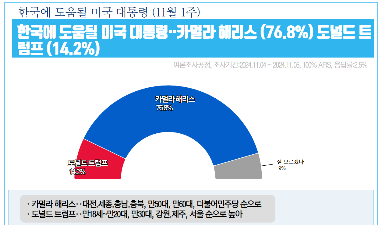 Çѱ¹¿¡ µµ¿òµÉ ¹Ì±¹ ´ëÅë·É(¿©·ÐÁ¶»ç°øÁ¤, ÀÀ´ä·ü 2.5%, 100% ARS Á¶»ç, 2024.11.07°øÇ¥)