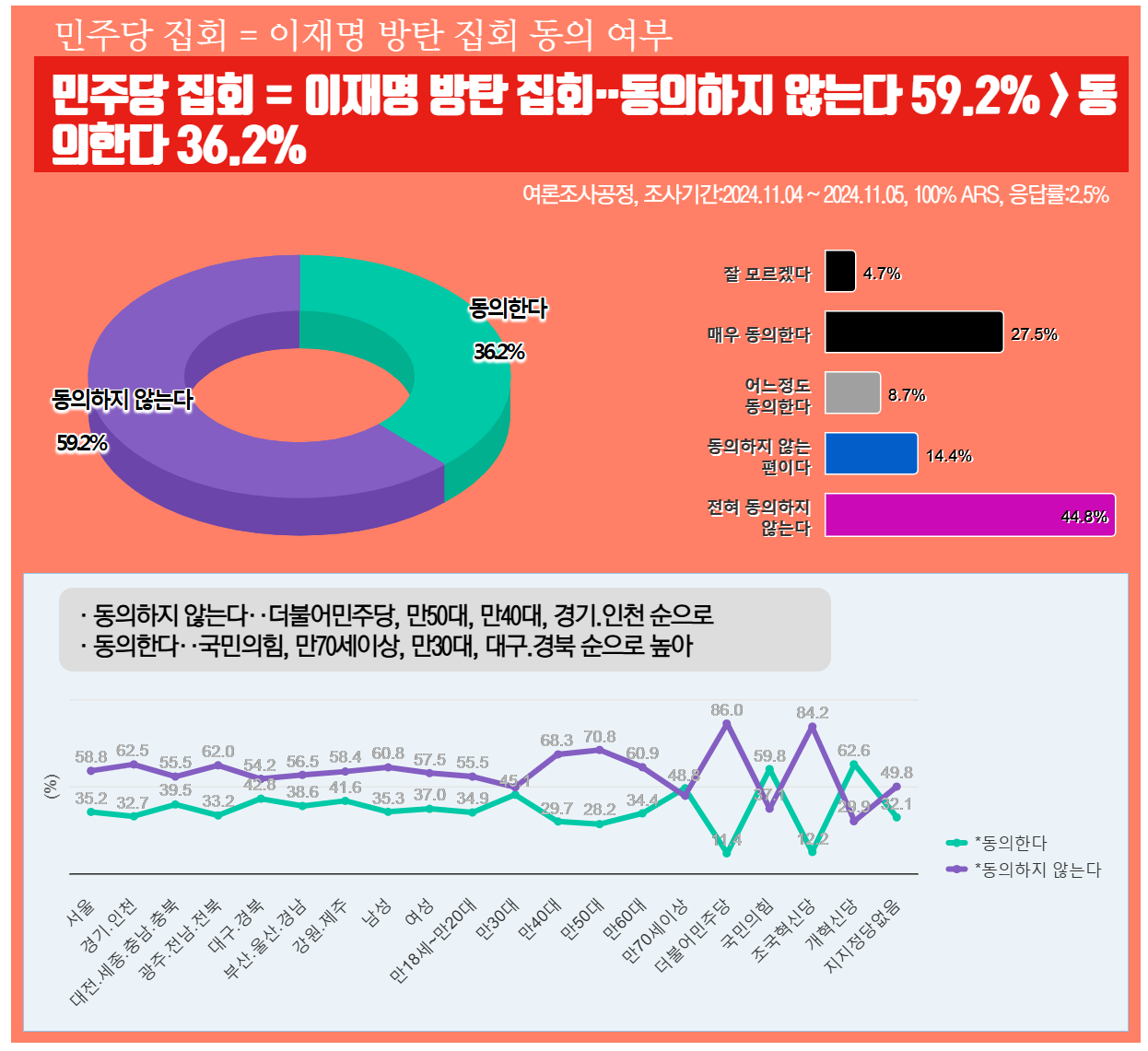¹ÎÁÖ´ç Áýȸ = ÀÌÀç¸í ¹æÅº Áýȸ µ¿ÀÇ ¿©ºÎ(¿©·ÐÁ¶»ç°øÁ¤, ÀÀ´ä·ü 2.5%, 100% ARS Á¶»ç, 2024.11.07°øÇ¥)