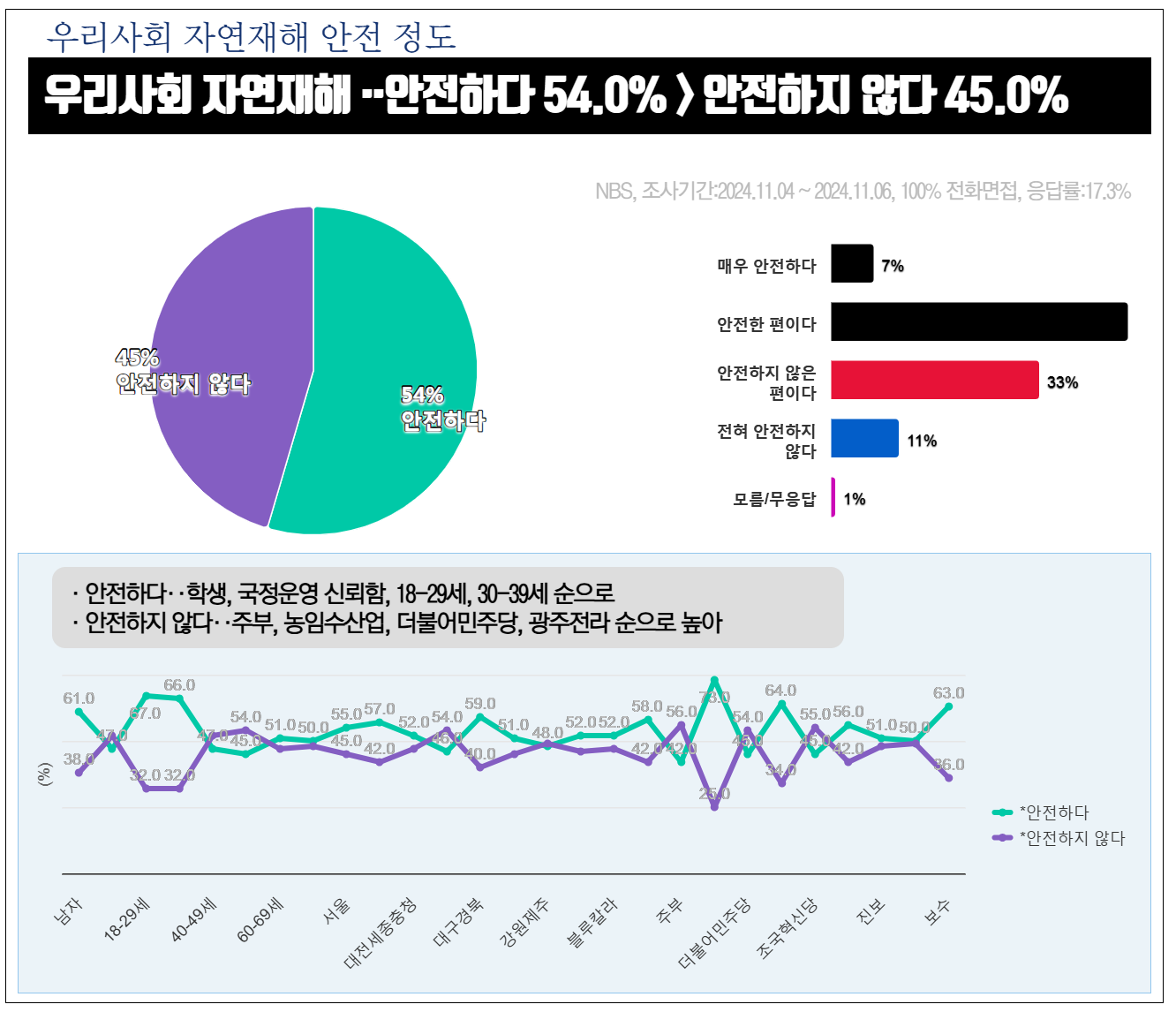 ¿ì¸®»çȸ ÀÚ¿¬ÀçÇØ ¡¥¾ÈÀüÇÏ´Ù 54.0% > ¾ÈÀüÇÏÁö ¾Ê´Ù 45.0%