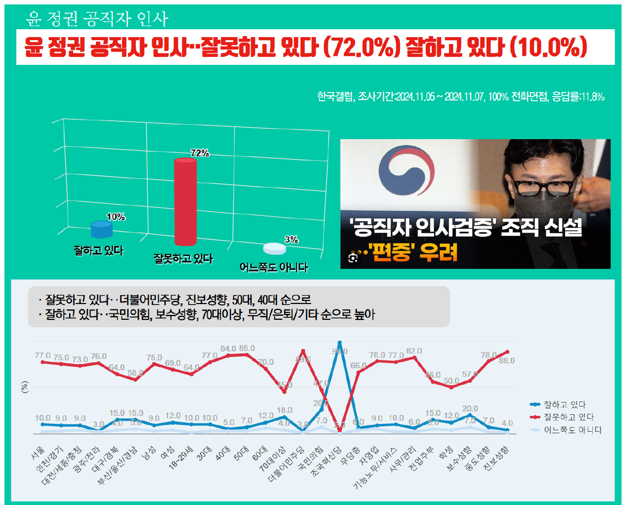 À± Á¤±Ç °øÁ÷ÀÚ Àλ硥À߸øÇϰí ÀÖ´Ù (72.0%) ÀßÇϰí ÀÖ´Ù (10.0%)