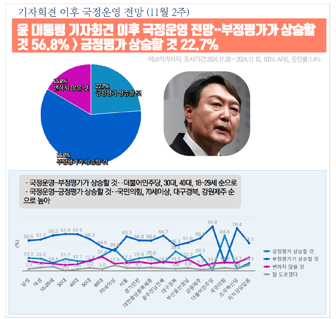 ±âÀÚȸ°ß ÀÌÈÄ ±¹Á¤¿î¿µ Àü¸Á(¿¡ºê¸®¸®¼Ä¡, ÀÀ´ä·ü 1.4%, 100% ARS Á¶»ç, 2024.11.11 °øÇ¥)