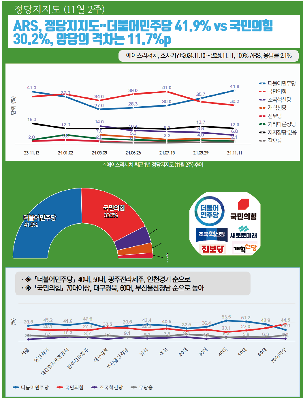 Á¤´çÁöÁöµµ(¿¡À̽º¸®¼Ä¡, ÀÀ´ä·ü 2.1%, 100% ARS Á¶»ç, 2024.11.13 °øÇ¥)