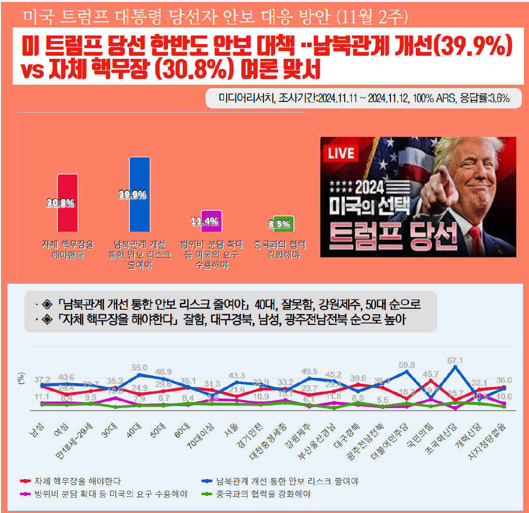 ¹Ì±¹ Æ®·³ÇÁ ´ëÅë·É ´ç¼±ÀÚ ¾Èº¸ ´ëÀÀ ¹æ¾È(¹Ìµð¾î¸®¼Ä¡, ÀÀ´ä·ü 3.6%, 100% ARS Á¶»ç, 2024.11.14 °øÇ¥)