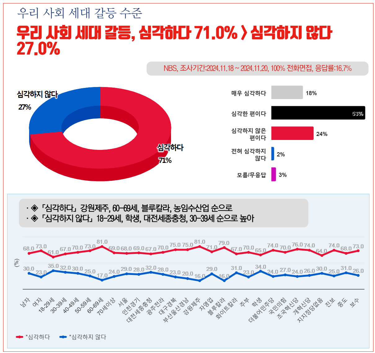 ¿ì¸® »çȸ ¼¼´ë °¥µî ¼öÁØ(ÄÉÀ̽ºÅȸ®¼Ä¡, ÀÀ´ä·ü 16.7%, 100% ¸éÁ¢¿ø Á¶»ç, 2024.11.21 °øÇ¥)