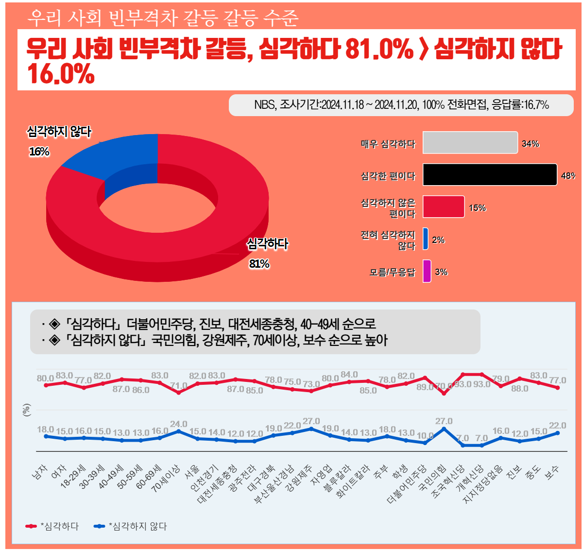 ¿ì¸® »çȸ ºóºÎ°ÝÂ÷ °¥µî °¥µî ¼öÁØ(ÄÉÀ̽ºÅȸ®¼Ä¡, ÀÀ´ä·ü 16.7%, 100% ¸éÁ¢¿ø Á¶»ç, 2024.11.21 °øÇ¥)