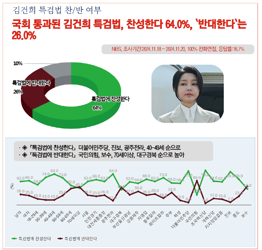 Á¶»ç±â°ü ÄÉÀ̽ºÅȸ®¼Ä¡°¡ 11¿ù 18ÀÏ¿¡¼ 20ÀϱîÁö »çÈê°£ ½Ç½ÃÇÏ¿© 21ÀÏ ¹ßÇ¥ÇÑ ¡¸±è°ÇÈñ Ư°Ë¹ý Âù/¹Ý ¿©ºÎ¡¹¸¦ ¹¯´Â Á¶»ç¿¡¼ ¡¸Æ¯°Ë¹ý¿¡ Âù¼ºÇÑ´Ù¡¹°¡ 64%¸¦ ±â·ÏÇÏ¿© 2À§ ¡¸Æ¯°Ë¹ý¿¡ ¹Ý´ëÇÑ´Ù¡¹(26%)¿¡ 38%p Â÷ÀÌ·Î ¾Õ¼ ³ª°¡´Â °ÍÀ¸·Î ³ªÅ¸³µ´Ù.