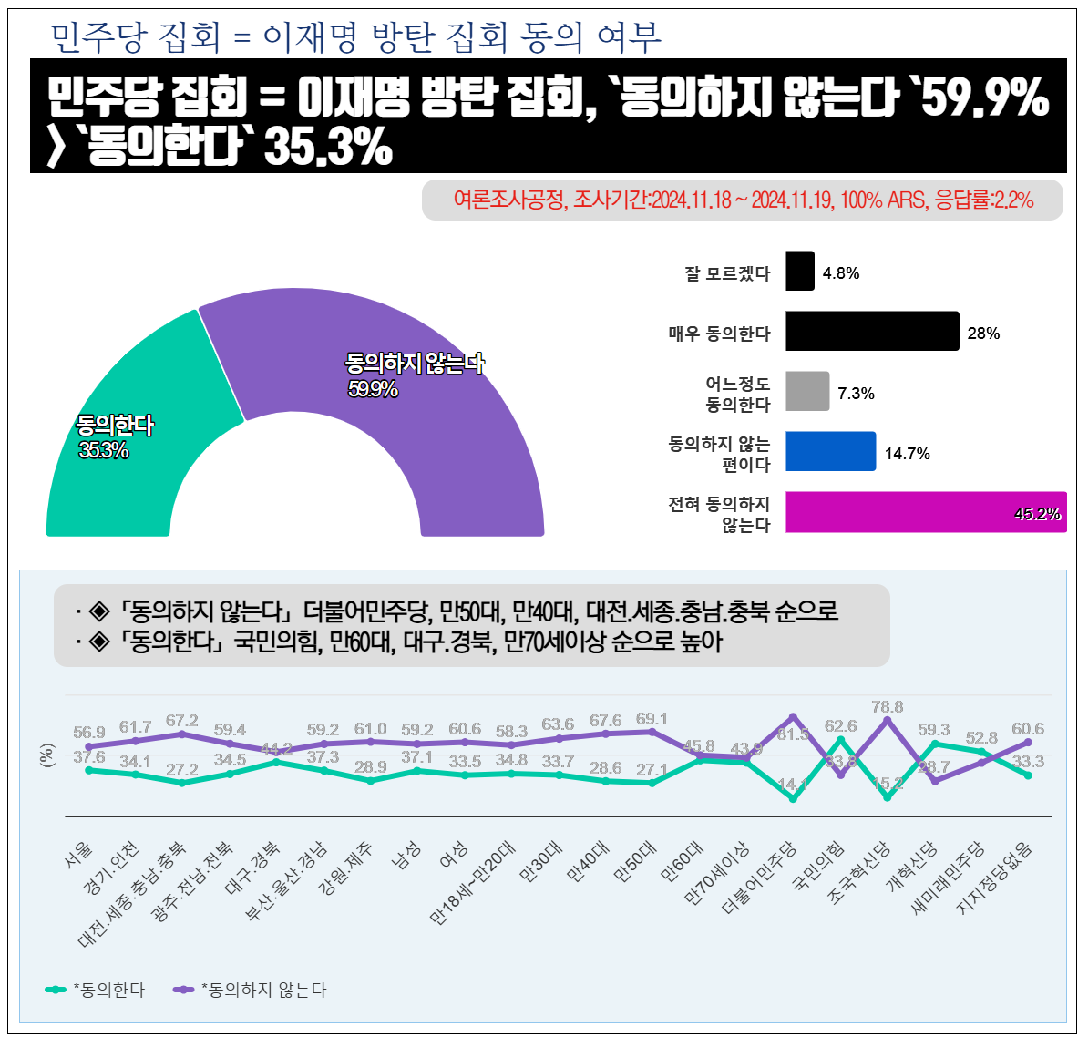 ¹ÎÁÖ´ç Áýȸ = ÀÌÀç¸í ¹æÅº Áýȸ µ¿ÀÇ ¿©ºÎ(¿©·ÐÁ¶»ç°øÁ¤, ÀÀ´ä·ü 2.2%, 100% ARS Á¶»ç, 2024.11.21 °øÇ¥)