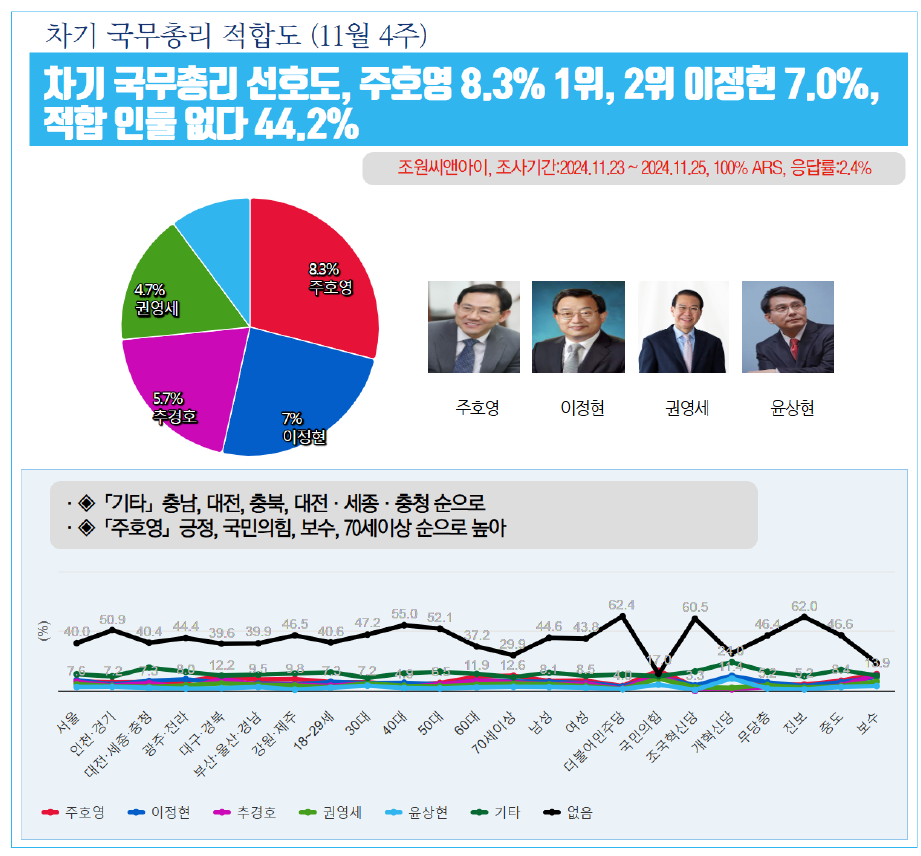 Â÷±â ±¹¹«ÃѸ® ÀûÇÕµµ(Á¶¿ø¾¾¾Ø¾ÆÀÌ, ÀÀ´ä·ü 2.4%, 100% ARS Á¶»ç, 2024.11.27 °øÇ¥)