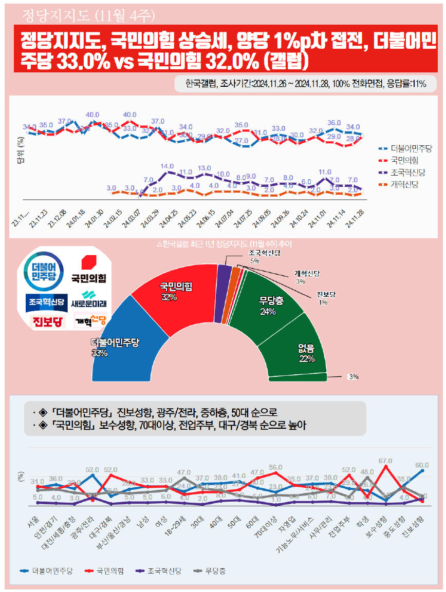 Á¤´çÁöÁöµµ(Çѱ¹°¶·´Á¶»ç¿¬±¸¼Ò, ÀÀ´ä·ü 11%, 100% ¸éÁ¢¿ø Á¶»ç, 2024.11.29 °øÇ¥)