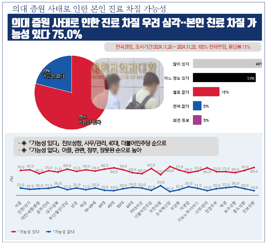 ÀÇ´ë Áõ¿ø »çÅ·ΠÀÎÇÑ º»ÀÎ Áø·á Â÷Áú °¡´É¼º(Çѱ¹°¶·´Á¶»ç¿¬±¸¼Ò, ÀÀ´ä·ü 11%, 100% ¸éÁ¢¿ø Á¶»ç, 2024.11.29 °øÇ¥)
