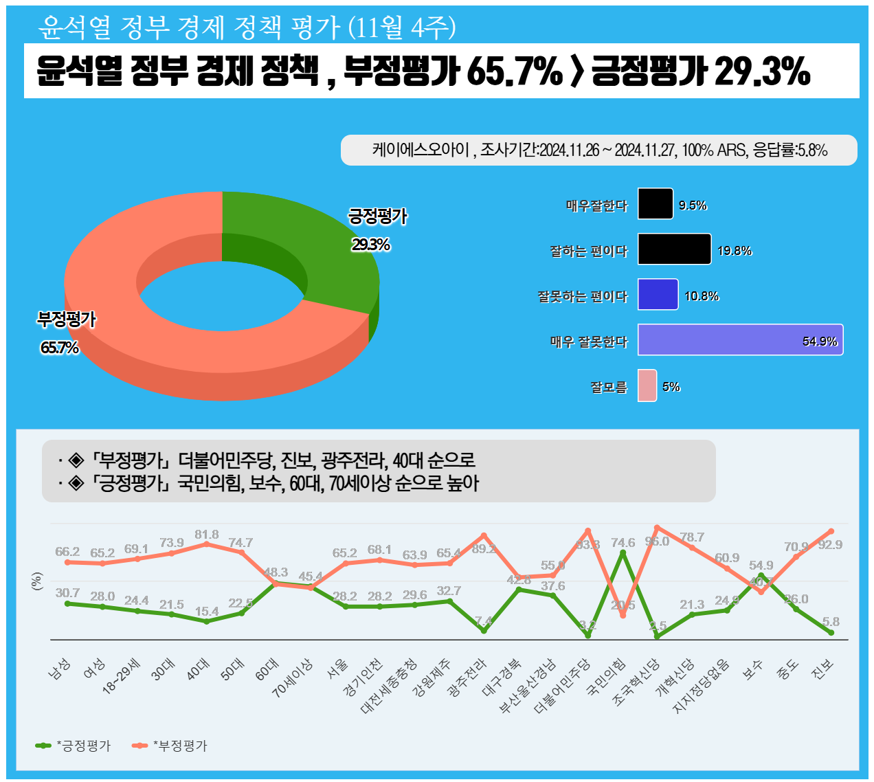 À±¼®¿­ Á¤ºÎ °æÁ¦ Á¤Ã¥ Æò°¡(ÄÉÀÌ¿¡½º¿À¾ÆÀÌ ÁÖ½Äȸ»ç(Çѱ¹»çȸ¿©·Ð¿¬±¸¼Ò), ÀÀ´ä·ü 5.8%, 100% ARS Á¶»ç, 2024.11.29 °øÇ¥)