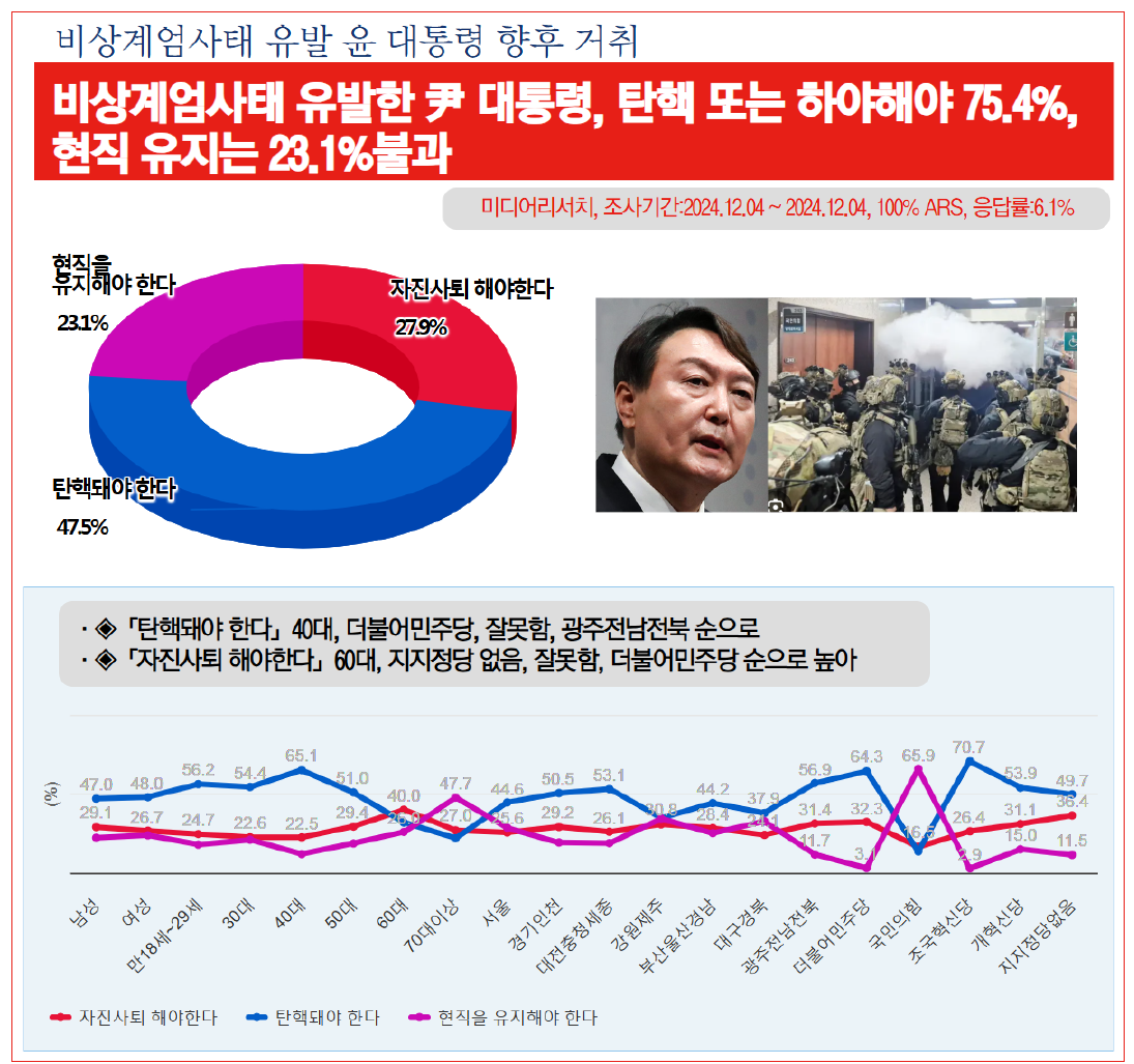 ºñ»ó°è¾ö»çÅ À¯¹ß À± ´ëÅë·É ÇâÈÄ °ÅÃë(¹Ìµð¾î¸®¼Ä¡, ÀÀ´ä·ü 6.1%, 100% ARS Á¶»ç, 2024.12.05 °øÇ¥)