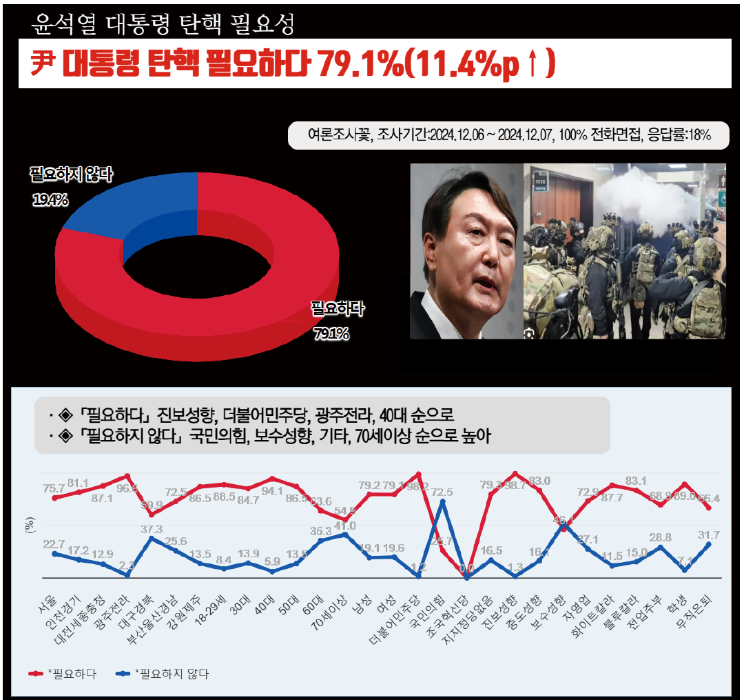 Á¶»ç±â°ü ¿©·ÐÁ¶»ç²ÉÀÌ 12¿ù 6ÀÏ¿¡¼ 7ÀϱîÁö ÀÌÆ²°£ ½Ç½ÃÇÏ¿© 7ÀÏ ¹ßÇ¥ÇÑ ¡¸À±¼®¿ ´ëÅë·É źÇÙ Çʿ伺¡¹Á¶»ç¿¡¼ '¸Å¿ì ÇÊ¿äÇÏ´Ù'¿Í '¾î´ÀÁ¤µµ ÇÊ¿äÇÏ´Ù'¸¦ ÇÕÇÑ ¡¸ÇÊ¿äÇÏ´Ù¡¹´Â 79.1%À̸ç, 'º°·Î ÇÊ¿äÇÏÁö ¾Ê´Ù'¿Í 'ÀüÇô ÇÊ¿äÇÏÁö ¾Ê´Ù'¸¦ ÇÕÇÑ ¡¸ÇÊ¿äÇÏÁö ¾Ê´Ù¡¹´Â 19.3%·Î ³ª¿Ô´Ù.