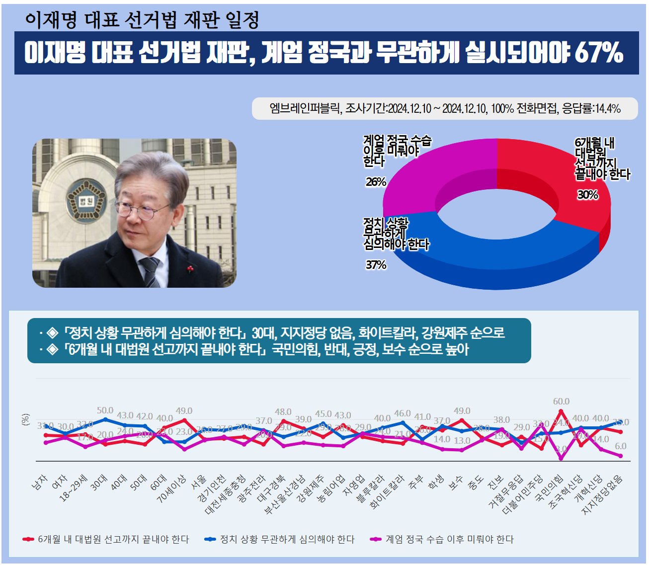 ÀÌÀç¸í ´ëÇ¥ ¼±°Å¹ý ÀçÆÇ ÀÏÁ¤(¿¥ºê·¹ÀÎÆÛºí¸¯, ÀÀ´ä·ü 14.4%, 100% ¸éÁ¢¿ø Á¶»ç, 2024.12.12 °øÇ¥)