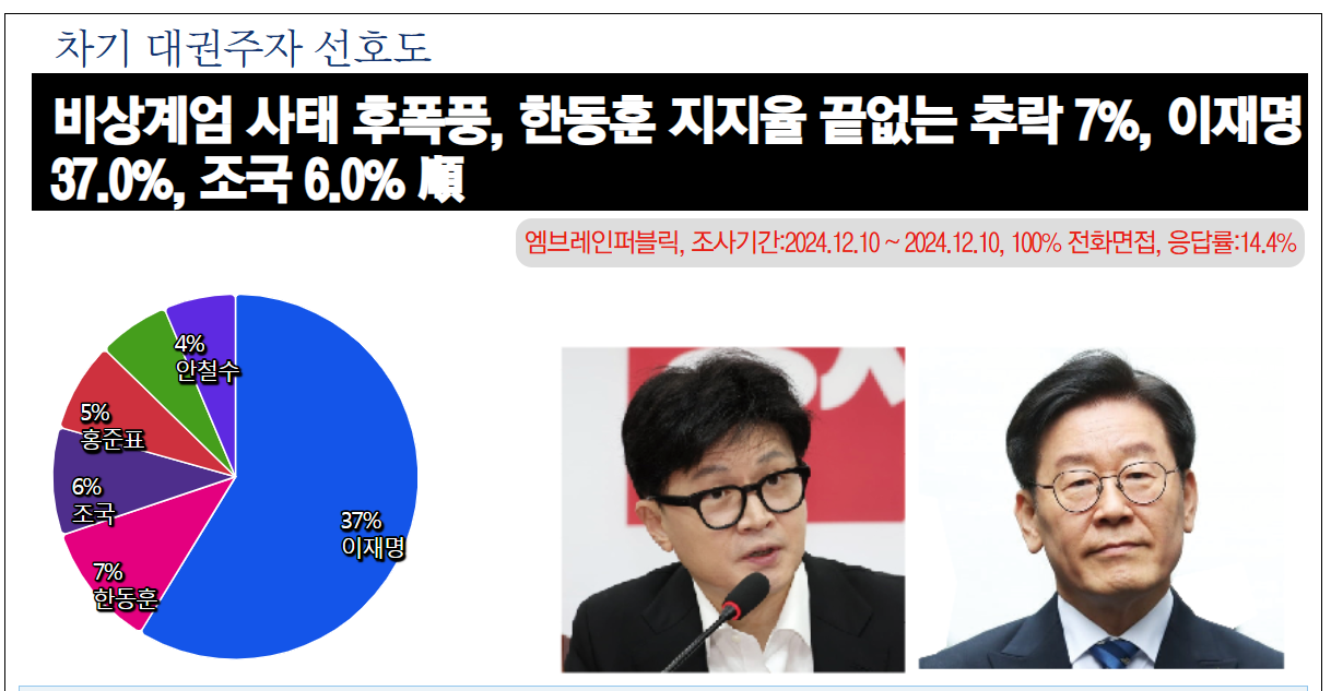 Â÷±â ´ë±ÇÁÖÀÚ ¼±È£µµ(¿¥ºê·¹ÀÎÆÛºí¸¯, ÀÀ´ä·ü 14.4%, 100% ¸éÁ¢¿ø Á¶»ç, 2024.12.12 °øÇ¥)
